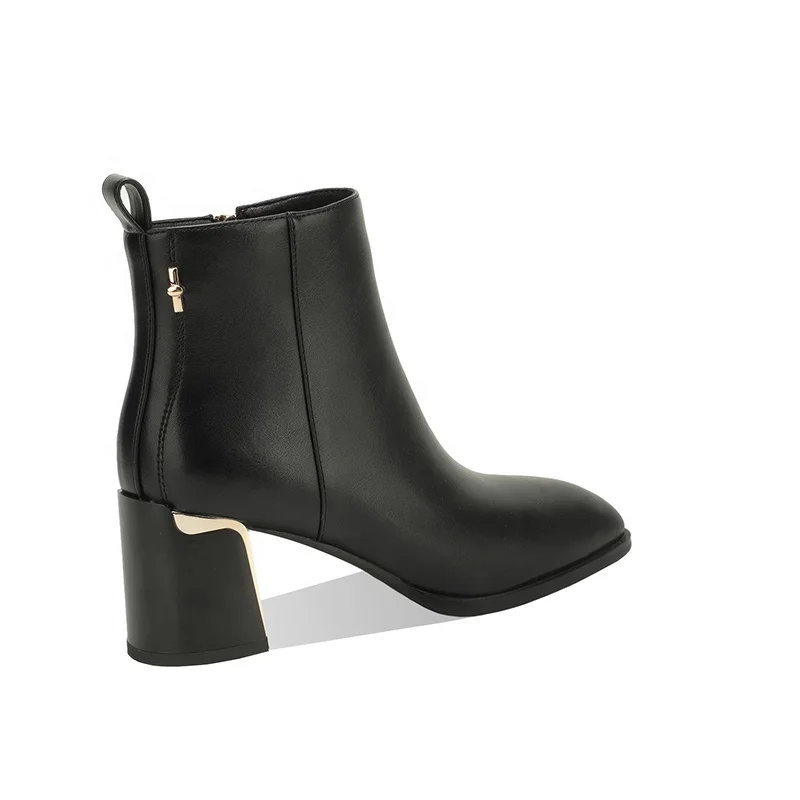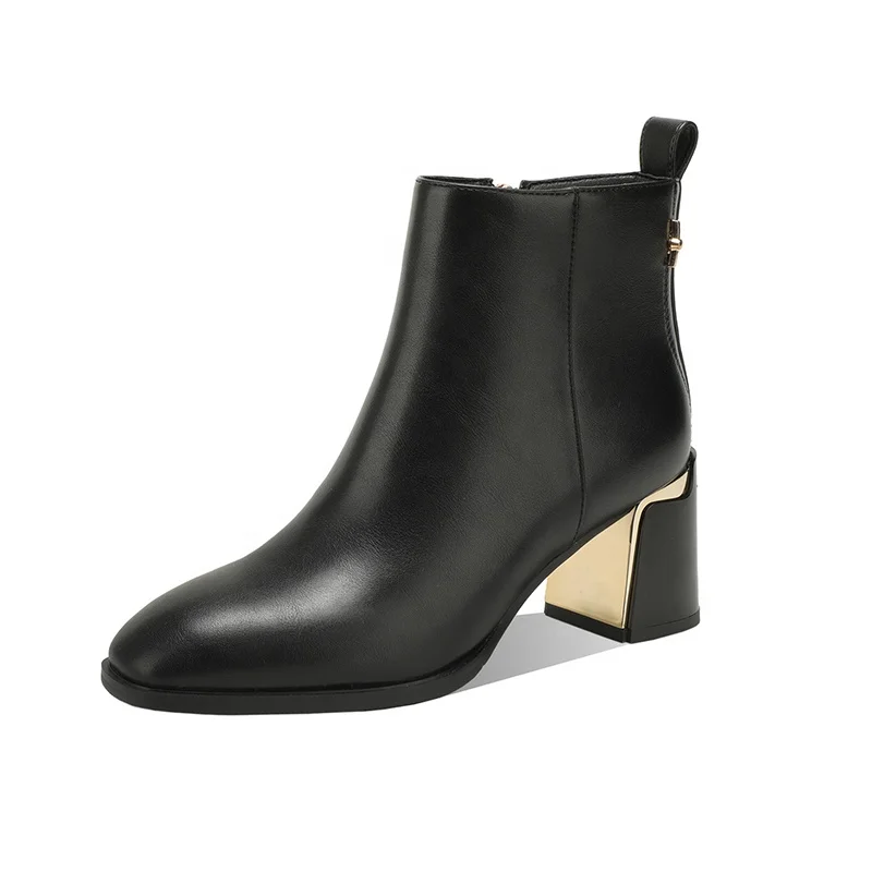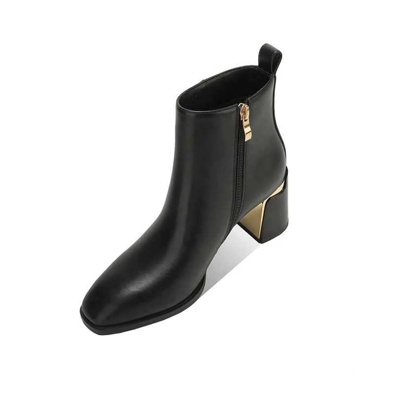 Moncheer Lady's Ankle Boots with Thick Heels, Fashionable Women's Boots with Gold Geometric Heel